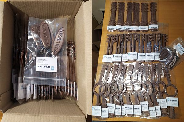 Els nostres companys Elena i Carles han lliurat de nou una remesa de material en 3D per a subjectar les mascaretes al personal de la Unitat de Cremats.
